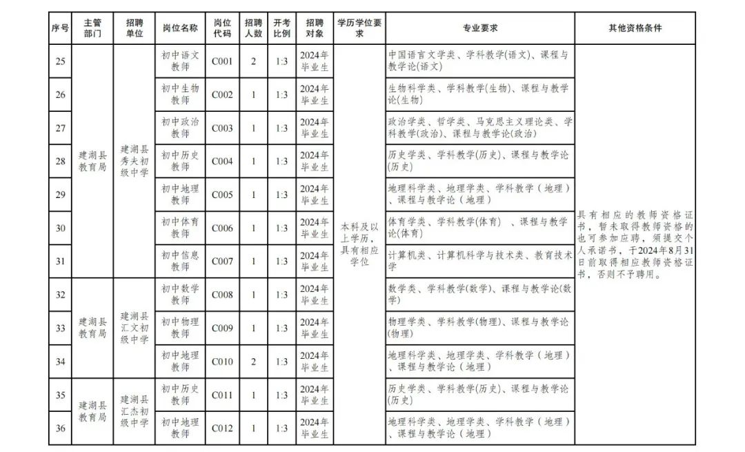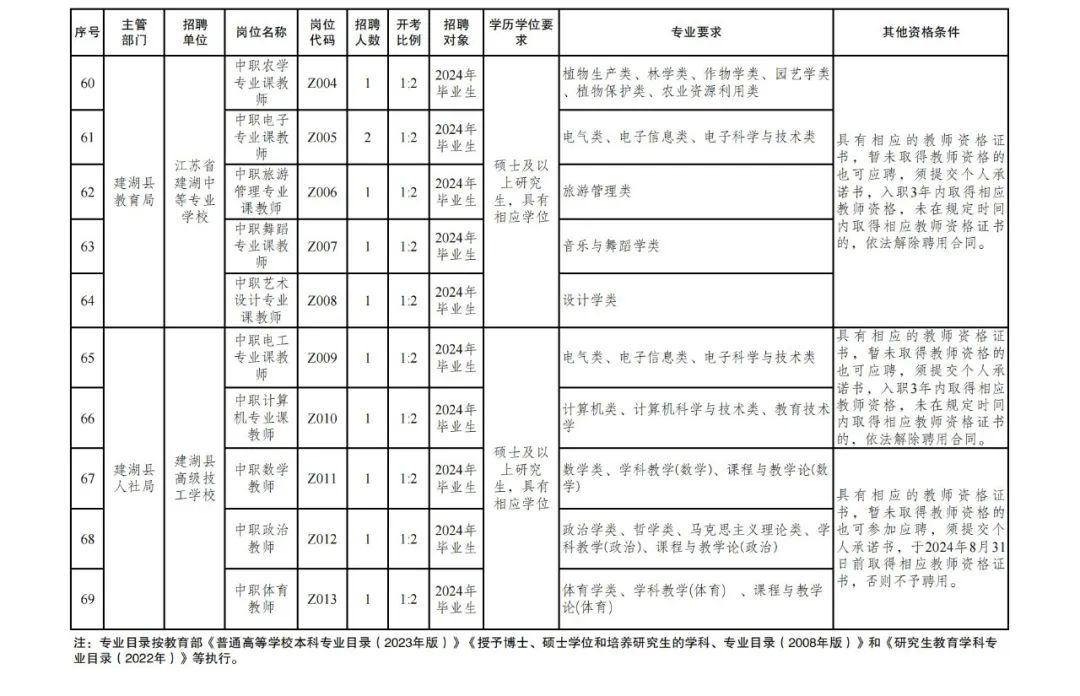 根据教育事业发展和教师队伍建设的需要,建湖县部分学校决定赴高校招聘教师105名。