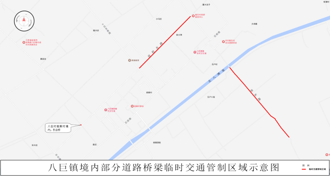 4.八巨镇境内东合桥、王庄小学路、前东路、前程东路,全幅交通管制。