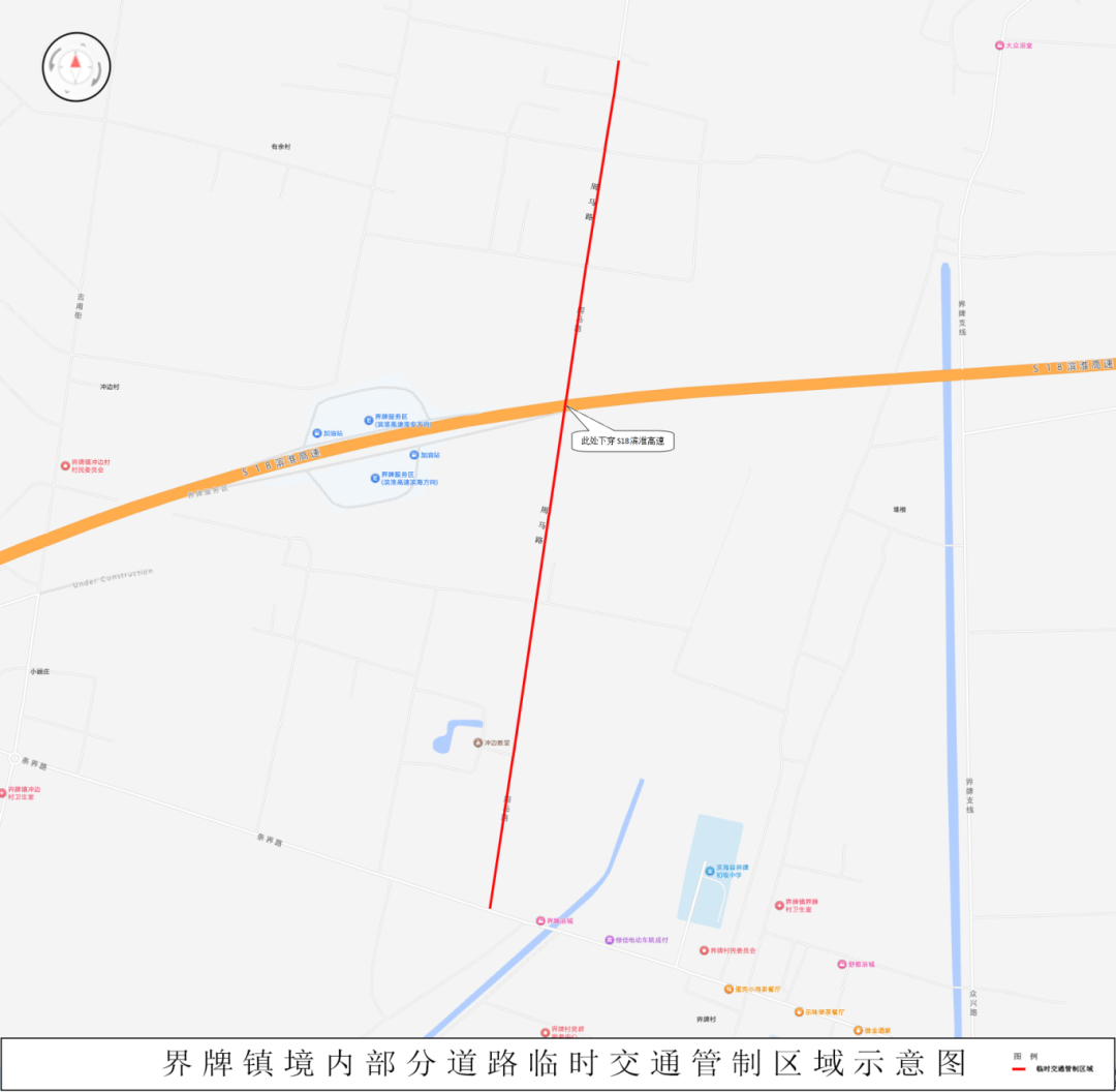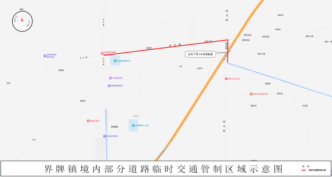 2.界牌镇境内周马路(界大路)、复兴路(吉兴路)、淮双路,全幅交通管制;