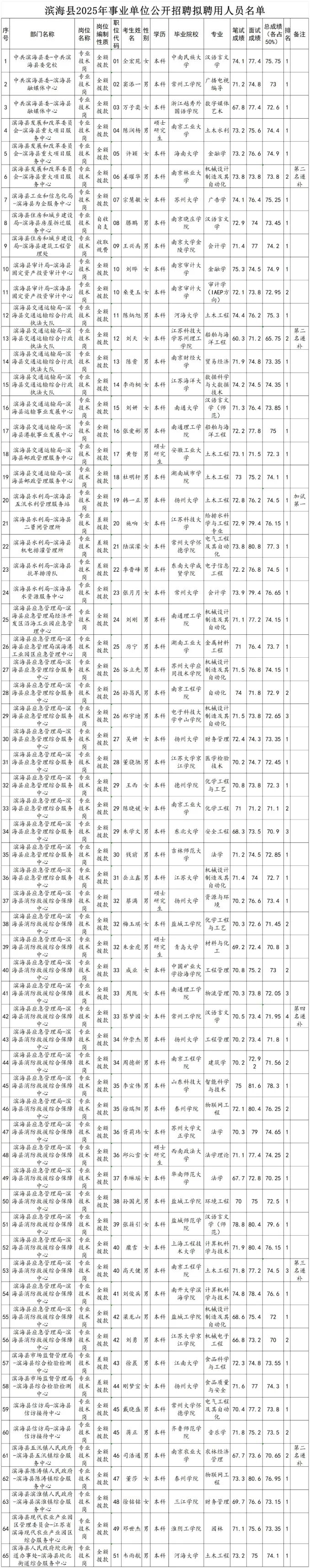 附件:滨海县2025年事业单位公开招聘拟聘用人员名单