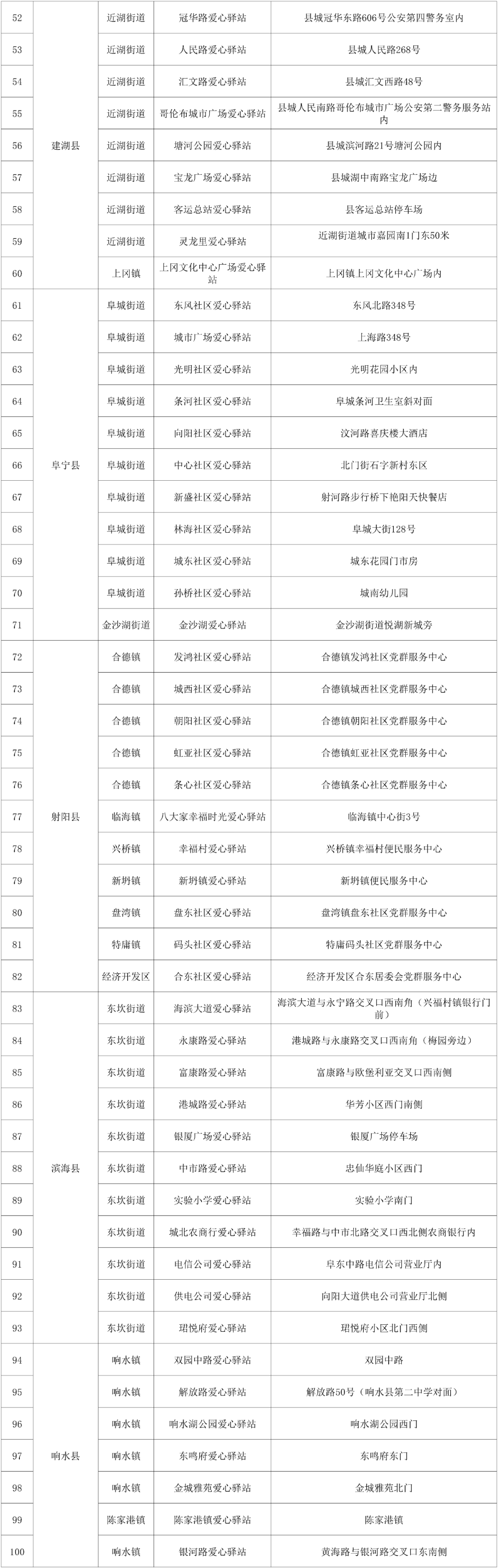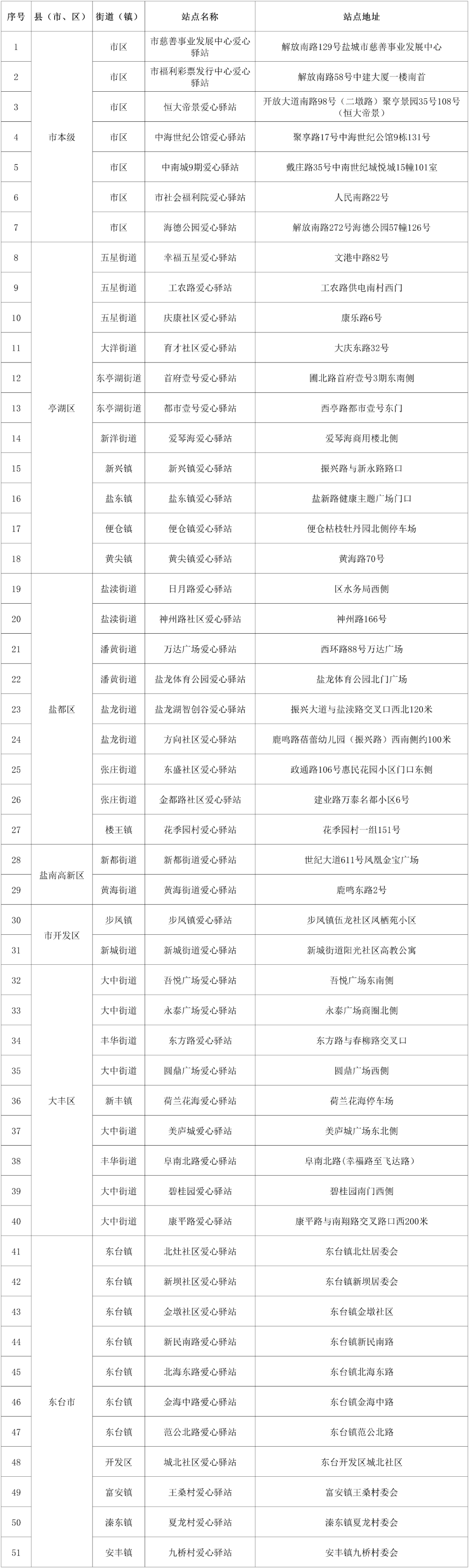 “此次100个‘爱心驿站’的建成开放,不仅为服务类社会救助拓展了新阵地,更让‘有一扇门为你打开、有一盏灯为你点亮、有一杯热水温暖你’成为盐城街头最动人的民生风景。”市民政局相关负责人表示,将持续做好“爱心驿站”运营管理工作,进一步织密社会关爱网络,为“幸福盐城”建设注入更多民生温度,让关心关爱困难群众和户外劳动者的社会氛围在全城持续升温。