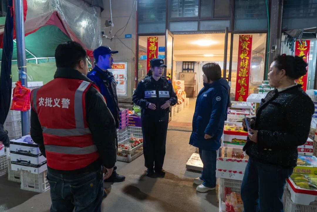 农批市场交易量大、现金流密集,易成为黑恶势力滋生的温床,欺行霸市、强买强卖等行为不仅扰乱市场秩序,更损害商户和群众利益。警务站的设立,如同在市场立起一座震慑黑恶势力的“灯塔”,常态化警力进驻结合摩托车巡逻、实地走访,让各类违法违规行为无处遁形,从源头上遏制“菜霸”“市霸”滋生。